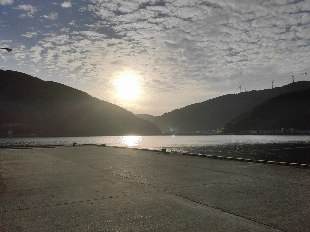 着いたころには、夕日がまぶしい時間帯でしたが、漁港の雰囲気はサイコーでした。