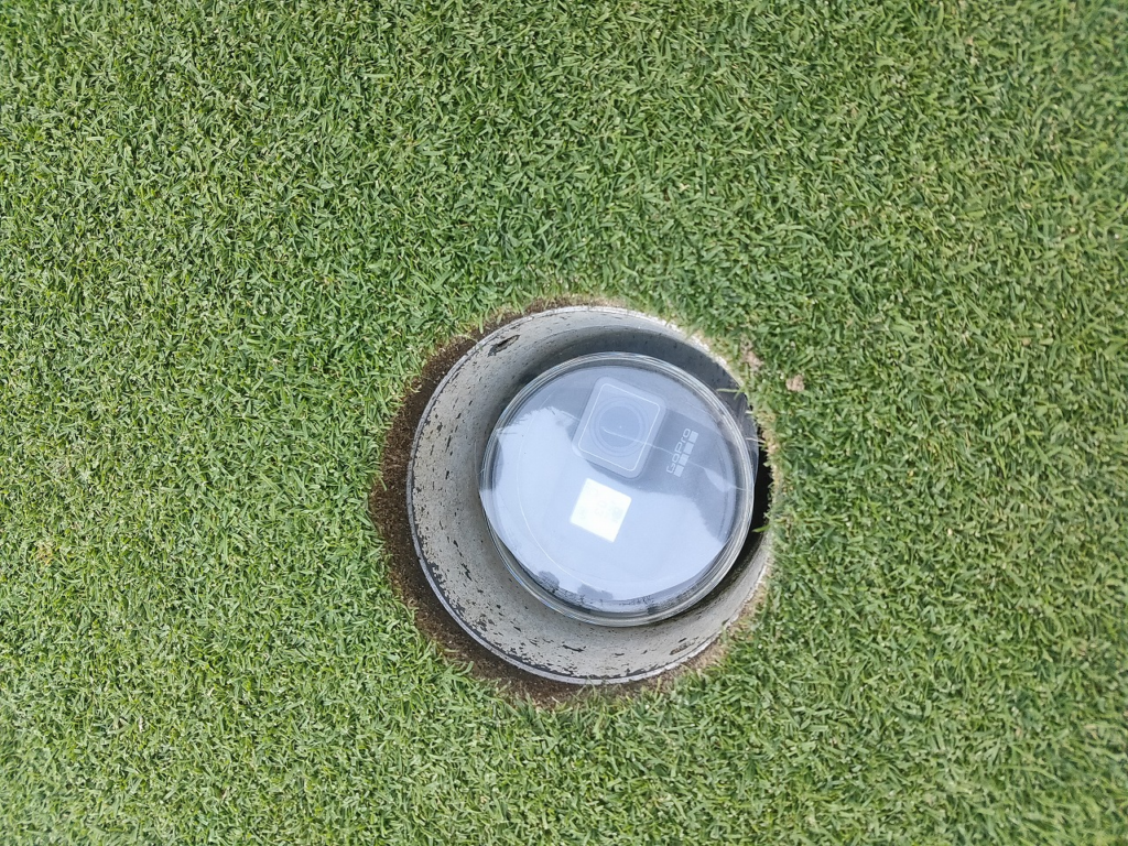 上の画像は、カップの中にアクションカメラ(Go pro)を仕掛け、カップインするシーンをカップの中から撮影しました。