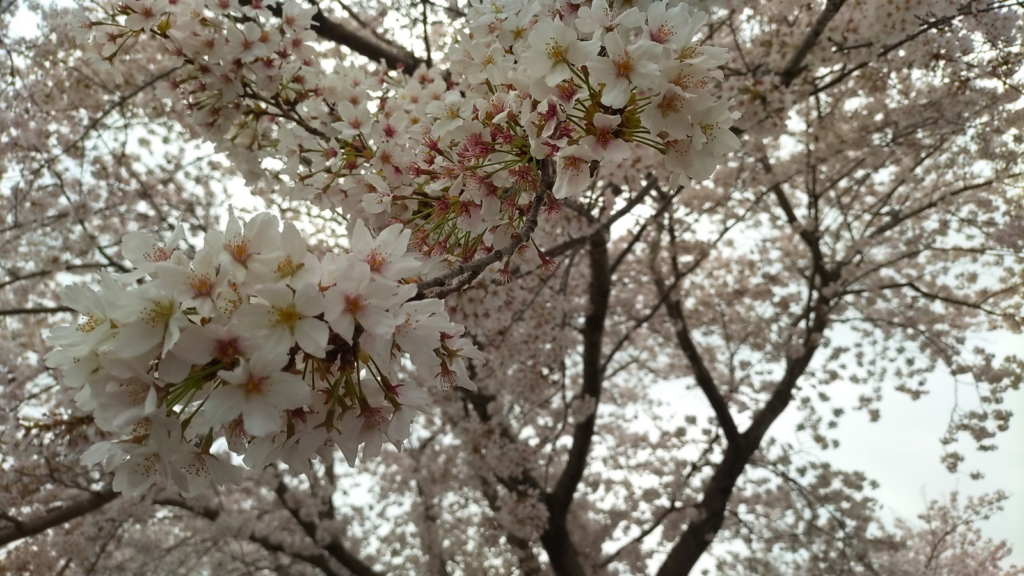 天気は、曇りで少し残念でしたが、桜並木や桜のトンネルが多くの箇所にあって、
