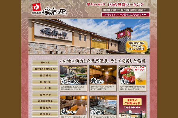 温泉サイト|千葉県船橋市 ジャンル温泉|銭湯|温浴事業種別コーポレートサイト|ホームページ|ウェブサイトURLhttps://www.yurakirari.com/yuranosato/tenpo/funabashi.html地域温泉サイト|千葉県船橋市