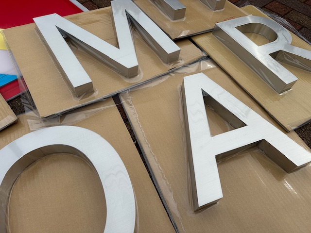 今回のご提案は、看板内部に蛍光灯が入っているものを、ステンレス製の立体文字にして~箱の外側をキレイにお化粧します。