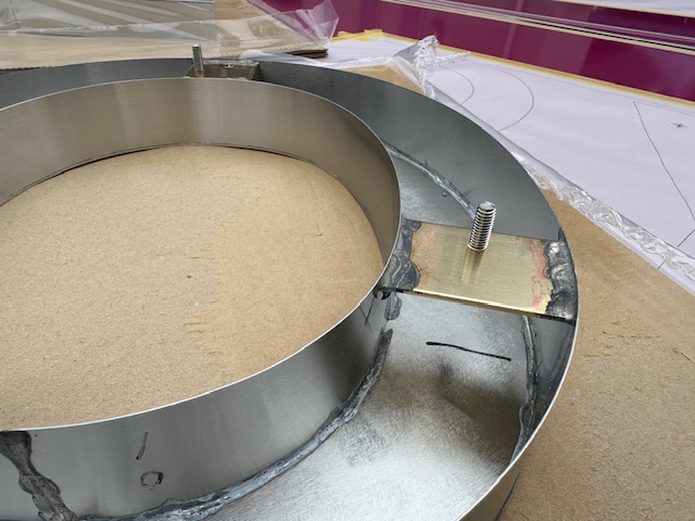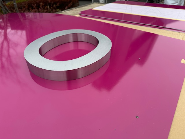 パネルに穴を開けてステンレス立体文字を取り付けます