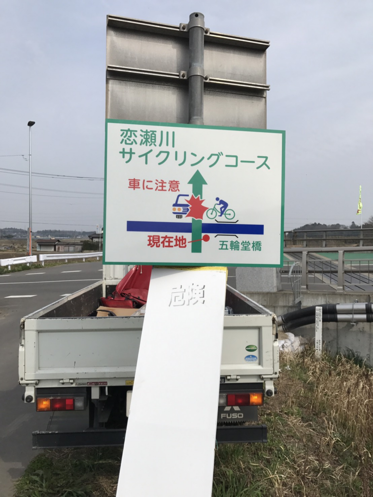 石岡市を縦断している、サイクリングコース案内看板の修繕です。