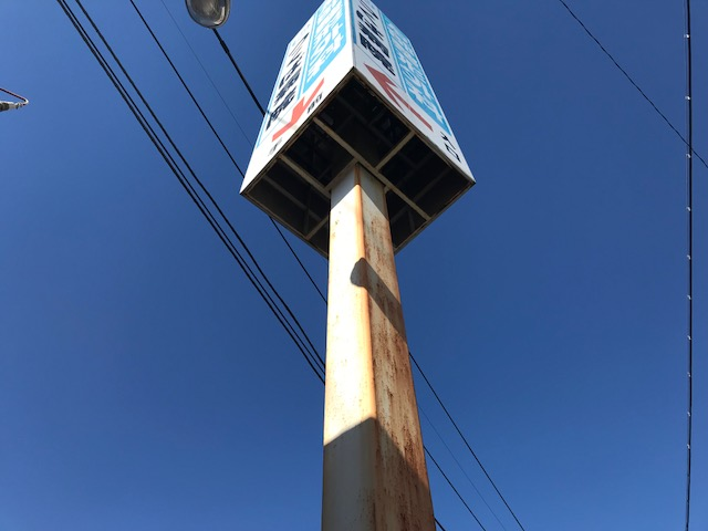 看板の全長は、電柱とほぼ同じの大型看板です