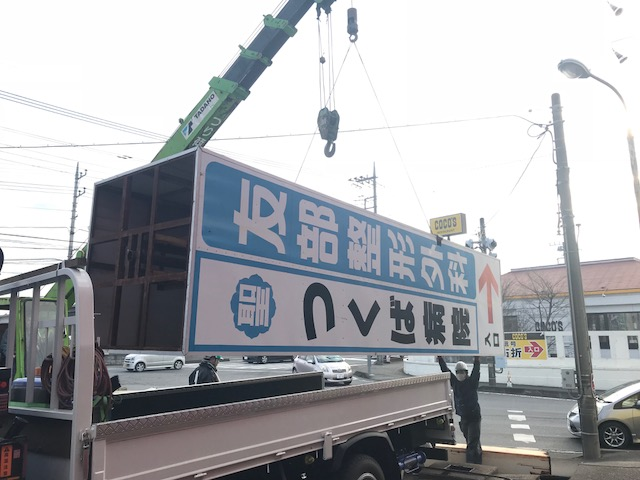 かなりの大型看板です。作業は慎重に行いました