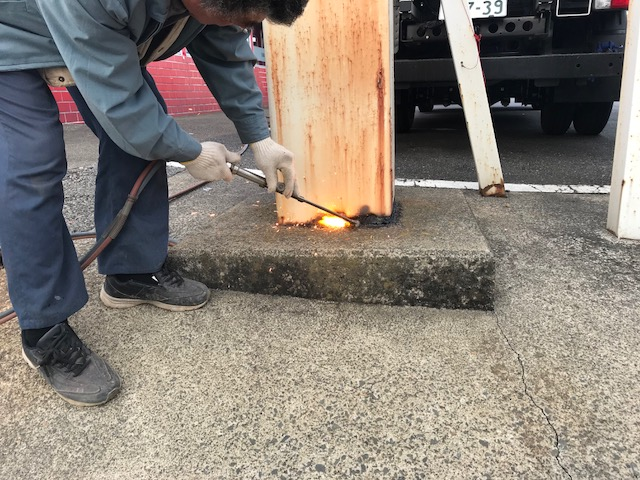 残った柱も、ガスバーナーで切断して行きます