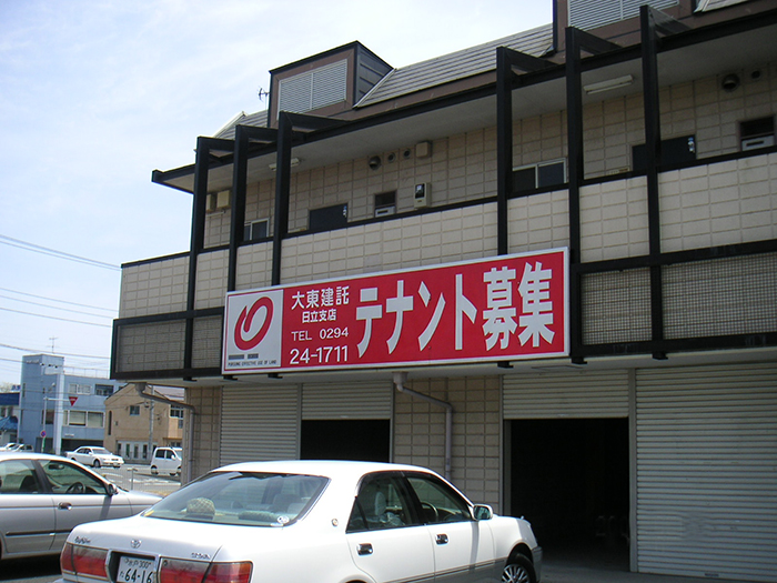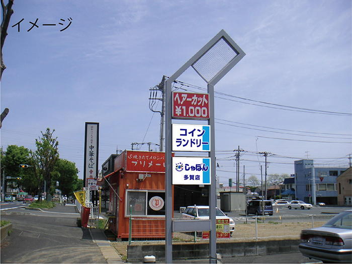 今回ご紹介するのは茨城県のコインランドリー様の看板設置です。テナント店舗にコインランドリーを開店するので看板の設置のご依頼です。店舗前の看板と駐車場入口にある看板の設置になります。