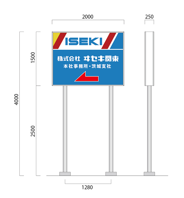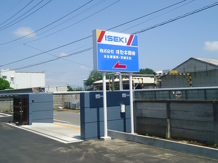 今回ご紹介する看板は、茨城県つくば市のお隣阿見町に本社を構える農業機械メーカー様の看板リニューアルです。看板が古くなってしまったので新しく作り直しと工場壁面に看板設置のご依頼です。