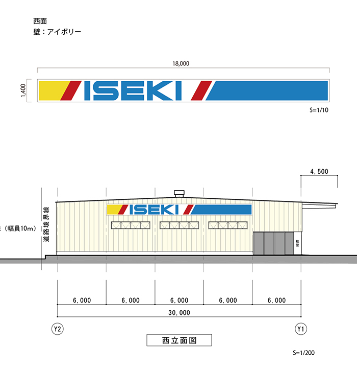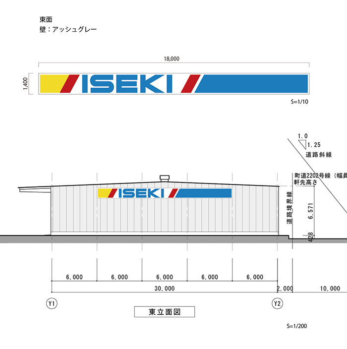 平面図では小さく感じますが、なんと横幅が18mもある看板です。実際に制作するととてつもなく長い看板です。