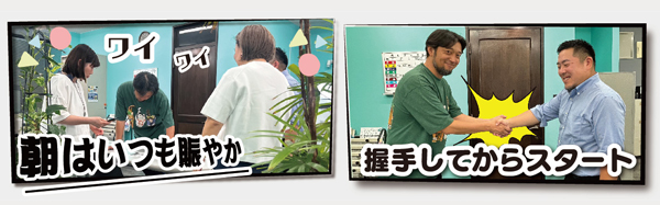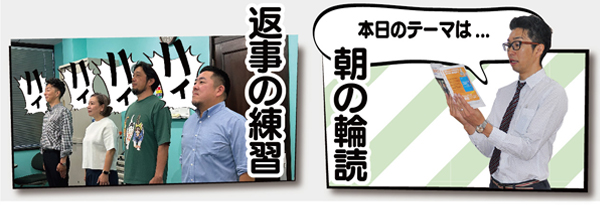 今日も一日お願いいたします!という気持ちでスタッフ全員で行っています。