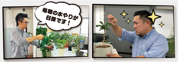 ご来社いただいた方がリラックスできるような空間作りを目指し、日々植物を育てています。